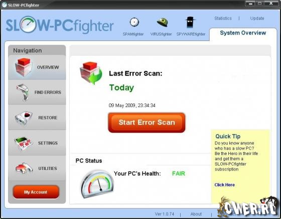 SLOW-PCfighter – программа для оптимизации и ускорения работа Вашего компьютера. Для анализа ошибок в компьютере эта программа использует самые передовые технологии имеющиеся на сегодняшний день.