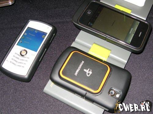Израильская компания Powermat Ltd продемонстрировала на CES 2009 свои решения по беспроводному питанию и зарядке бытовой электроники. Устройства для бесконтактной подзарядки мобильных телефонов, фотоаппаратов, ноутбуков и портативных игровых консолей уже выпускают многие производители. Но, по заверению представителей Powermat, их разработки отличаются самым высоким КПД – до 93%. Разработчик использует в своих устройствах комбинированную технологию магнитного крепления и RFID для обеспечения безопасности и экологической чистоты процесса зарядки. Специальный адаптер, снабженный RFID-чипом, распознает местоположения точечного излучателя и подключает устройство к питанию. Компания готова начать выпуск беспроводных зарядок уже в этом году, при этом стоимость ее комплектов составит от нескольких десятков до $100.
