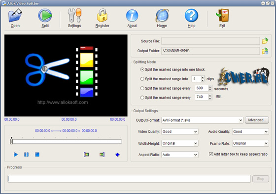 Allok Video Splitter – это мощная сервисная программа для разделения, обрезания или подрезки больших AVI, DivX, Xvid, MPEG, WMV, ASF, RM, MOV, 3GP или MP4 файлов на маленькие клипы в различных форматах. Встроенный видео проигрыватель и различные режимы разделения позволят вам с легкостью разделить или обрезать видео файл на маленькие клипы. Вы можете даже использовать данную программу для конвертирования отдельного файла. К выходным форматам относятся AVI, MPEG I/II, VCD, SVCD, DVD, WMV. Все кодировщики/кодеки уже встроены и любое преобразование может быть сделано после скачивания данной программы. Данная программа не требует каких-либо дополнительных технических навыков и очень проста в использовании.