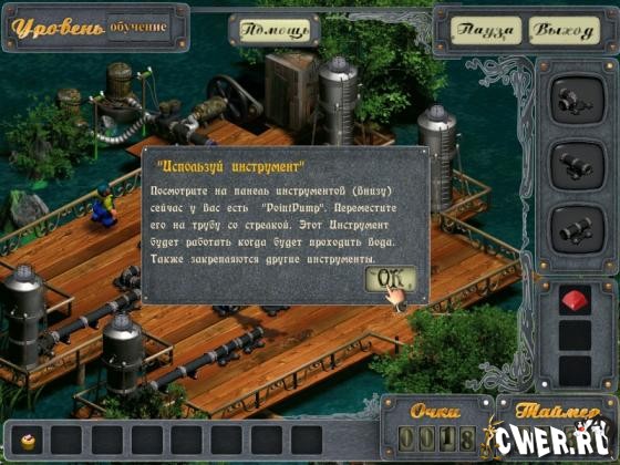 Для прохождения уровней вам нужно, во-первых, собрать систему труб, а во-вторых, собрать необходимые предметы — золотые водопроводный ключ и молоток — либо нажать красные кнопки. Над всеми обязательными предметами вращаются красные стрелки.