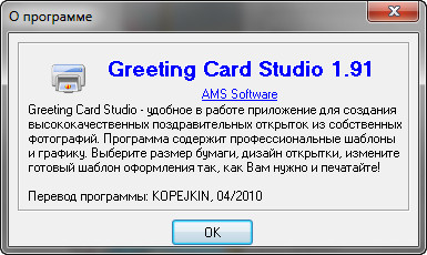 Greeting Card Studio - легкая в использовании программа для быстрого создания высококачественных поздравительных открыток. С помощью этой программы вы сможете создавать открытки, используя ваши собственные изображения, фон и текст. Программа содержит в себе готовые профессиональные шаблоны, предназначенные для быстрого создания открытки. Вам нужно всего лишь выбрать бумагу, нужный дизайн, открыть понравившийся шаблон, отредактировать открытку и распечатать ее на принтере.