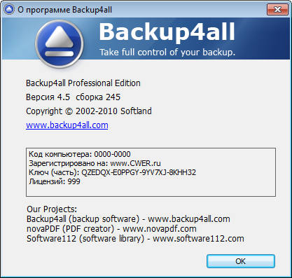 Скачать программу Backup4all Professional 4.5 Build 245 (25,47 МБ):
