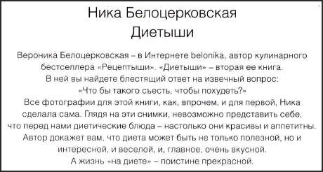 Вы знаете, что такое диета? Ну, конечно, кто же этого не знает... Наверняка хотя бы однажды приходилось на ней сидеть. Диета - это полезно, но очень трудно? Диета - это всегда невкусно? Диета - это унылые вареные овощи, несоленый рис и сухая безвкусная курица? Нет, нет и нет! В своей книге Ника Белоцерковская докажет вам, что диета может быть не только полезной, но и приятной. И интересной. И веселой. А самое главное - очень вкусной!