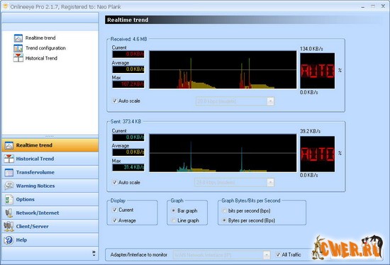 Обновилась программа OnlineEye Pro предназначенная для мониторинга интернет соединений (не только dial-up) со встроенной звонилкой и набором утилит (ping, whoise, trace). В графическом виде может показывать среднюю скорость, объём скачанной информации и т.д. Умеет выключать компьютер по расписанию и делать предупреждения о слишком долгом времени в сети...