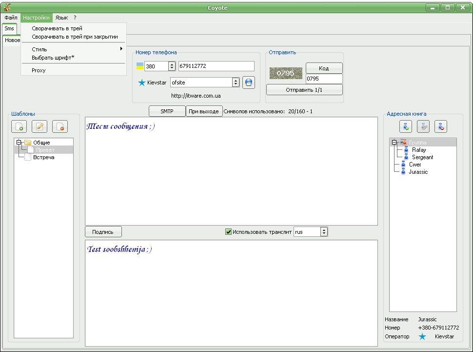 Coyote - это НАША СОБСТВЕННАЯ программа с открытым исходным кодом для БЕСПЛАТНОЙ отправки SMS на мобильные телефоны многих операторов: