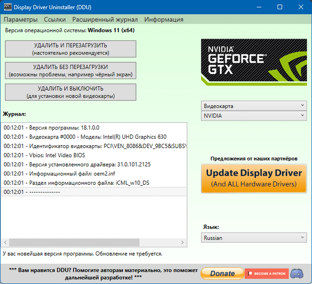 Display Driver Uninstaller - это утилита, которая поможет вам полностью удалить драйверы видеокарты NVIDIA или AMD из системы, не оставляя массу ненужных файлов (включая ключи реестра, папки и файлы).