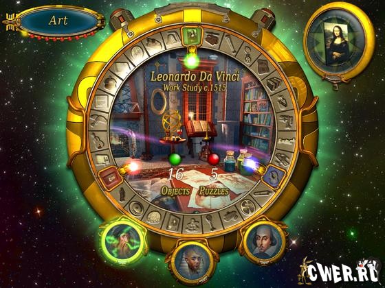 В этом историческом приключении сквозь время, на каждом шагу вас ждут секреты и откровения. Ищите то, что объединяет эти, казалось бы, столь разные и рассеянные во времени части тайны. В поисках спрятанных и ложно расставленных объектов, перепутанных во времени и пространстве, вам предстоит побывать в таких локациях как гробница царевны Хатшепсут, в мастерской братьев Райтов, кабинете Бенджамина Франклина, храме Конфуция и раздевалке Амелии Ирхарт.