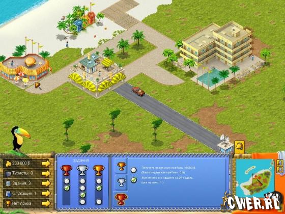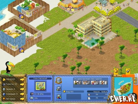Это симулятор гостиничного бизнеса. Вам предстоит взять на себя самые интересные и увлекательные обязанности владельца отеля! Имея на руках определённую сумму денег, вам предстоит создать лучшую сеть гостиниц. Размещая на вверенной территории отели, развлекательные комплексы, фитнес-центры, кафе, рестораны и другие важные для отдыха заведения, заработать любовь туристов и, конечно же, заполучить все их выделенные на отпуск финансы.