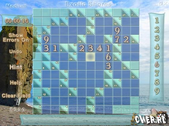 Суть игры заключается в заполнении пустых клеточек игрового поля числами от 1 до 9. Нужно добиться такой ситуации, когда при полностью заполненном поле суммы по вертикали и горизонтали будут равны числам в соответствующих рядах и колонках. Диагноз - ёршик для мозгов...