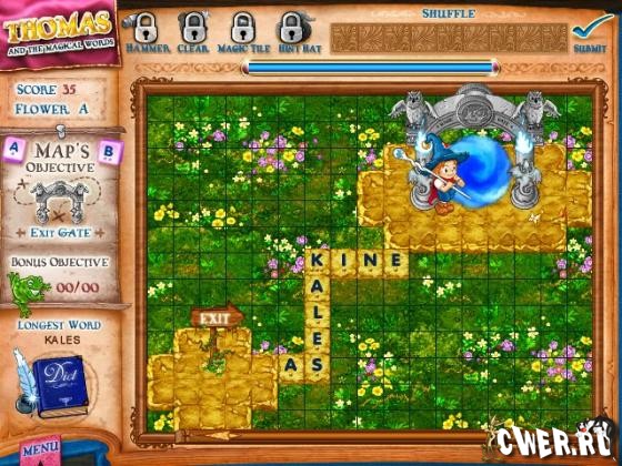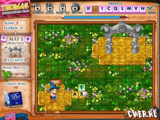 Томас застрял в Книге Волшебных Заклинаний, и вы должны помочь ему выбраться наружу! Используя буквы и полезные волшебные предметы, постройте путь, который выведет Томаса из книги наружу.