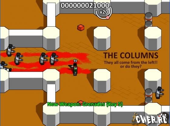 Отличная стрелялка про солдата с квадратной головой. Несколько типов сражения в разных лабиринтах, разное оружие - пистолеты, узи, дробовики, взрывающиеся бочки и много другое.