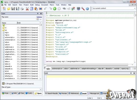SlickEdit - кросс-платформенный многоязычный редактор кода, который предоставляет программистам возможность создания, навигации, модифицирования, построения и отладки кода более быстрее и точнее. SlickEdit поддерживает огромное количество языков, включая такие популярные языки, как ActionScript, PHP, C/C++/C#, HTML, DB2, Python, Ruby, VBScript, Visual Basic, Assembler, Pascal, Perl, Java, javascript, XML, XMLDOC, SQL и множество других. В общей сложности, SlickEdit позволяет работать с более чем 40 языками на 7 платформах. Последняя версия строится на 21 летнем опыте компании в обеспечении разработчиков и развитие команды для создания, перемещения, изменения, создания и отлаживания кода быстрее и точнее. Программа содержит в себе все основные функции, которые нужны при написании и редактировании кода: подсветка синтаксиса, сбор информации о всех использованных функций и классов, навигация по коду, нахождение объявлений функций, поиск по всем включенным файлам и многое, многое другое.