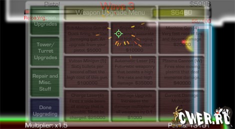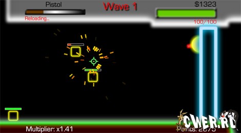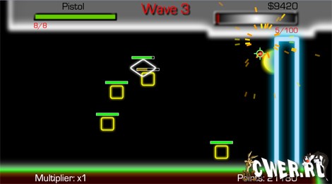 Это игра, где Вы защищаете свою башню от 40 волн геометрических форм, в пределах от маленького квадрата до ракетного восьмиугольника. 6 видов оружия, модернизируемые в процессе игры.