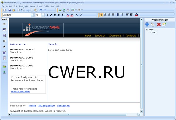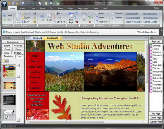 Ultima Website - программа для быстрого и легкого создания персонального сайта. Позволяет создавать вебсайт полностью в режиме WYSIWYG, так что вам не обязательно быть специалистом в HTML программировании.