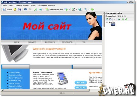 Программа для создания веб-страниц, которая автоматически создает HTML-код, в то время, как вы просто размещаете объекты, т.е. знание HTML от вас совершенно не требуется. Просто перетащите необходимые объекты в любое место страницы. После этого останется только закачать получившиеся файлы на сервер, с помощью встроенного инструмента "Публикация".